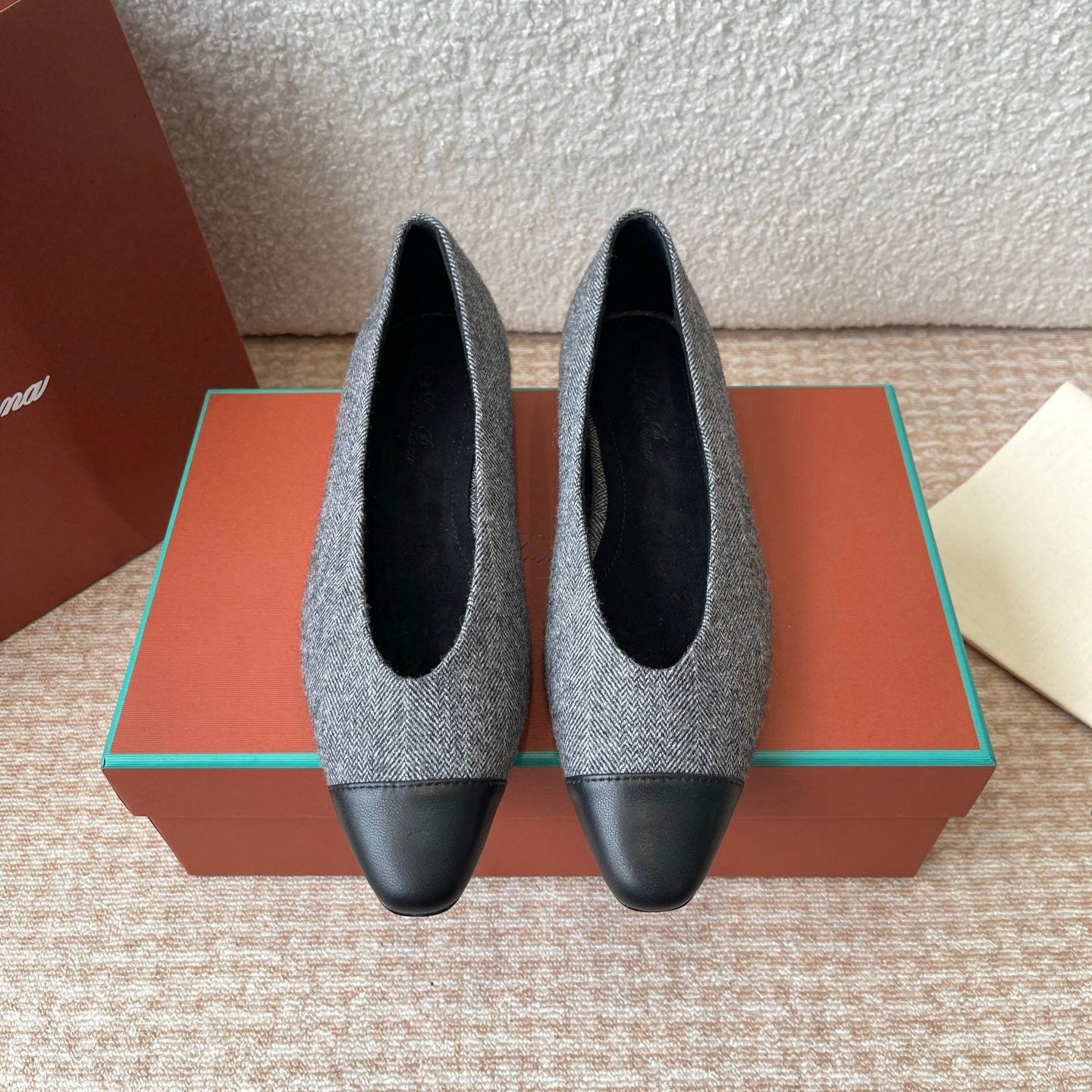 BALLET IN GREY TWEED MIX BLACK LAMBSKIN