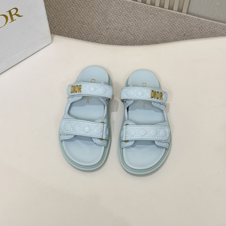 DIOR CLASSIC DOUBLE-STRAP SLIDES 25S IN PASTEL BLUE CALFSKIN