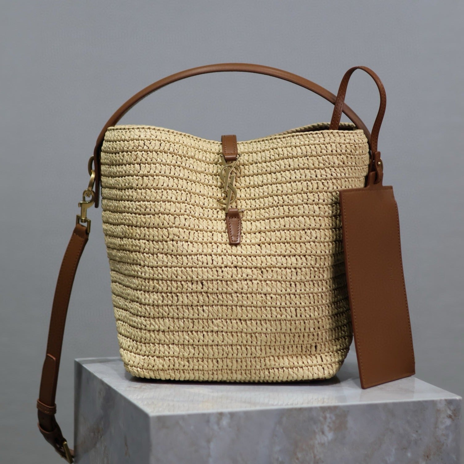LE 37 DE RAFIA TRENZADA Y PIEL DE CURTIDO VEGETAL
